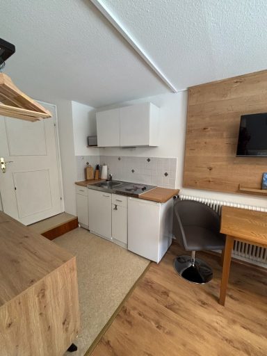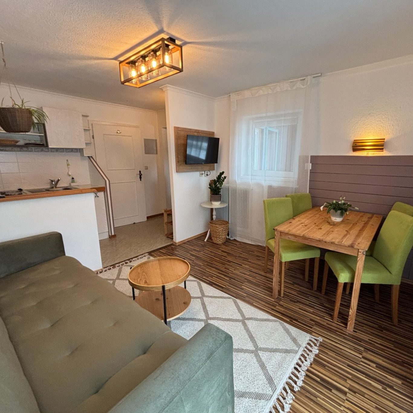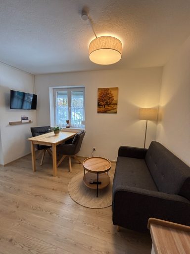 Willkommen in Ihrer gemütlichen Ferienwohnung, die Komfort, Helligkeit und eine ideale Lage für Naturbegeisterte vereint. Auf 44 qm erwartet Sie ein durchdacht gestalteter Wohn-, Ess- und Kochbereich – perfekt, um gemeinsam zu kochen, zu entspannen oder den nächsten Ausflug zu planen. Die kleine Küchenzeile ist ausgestattet mit zwei Kochplatten, einer Kühl-Gefrierkombination und allem, was Sie für Ihre täglichen Mahlzeiten benötigen.