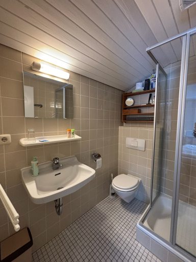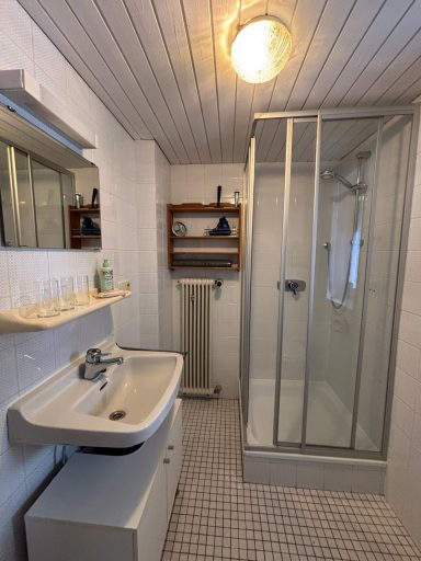 Im separaten Schlafzimmer genießen Sie erholsame Nächte in einem komfortablen 180x200cm Bett. Großzügiger Stauraum sorgt dafür, dass Sie Kleidung, Gepäck und Wander- oder Outdoorausrüstung bequem verstauen können. Die Morgensonne, die sanft in das Zimmer fällt, schenkt Ihnen einen angenehmen Start in den Tag. Das helle Badezimmer mit einer Dusche bietet ausreichend Platz – ideal, um sich nach einem aktiven Tag in den Bergen frisch zu machen.