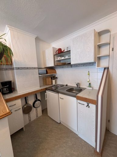 In der kleinen, aber gut ausgestatteten Küchenzeile finden Sie eine Kühl-Gefrier-Kombination, zwei Kochplatten und alle wichtigen Küchenutensilien für Ihren Aufenthalt.